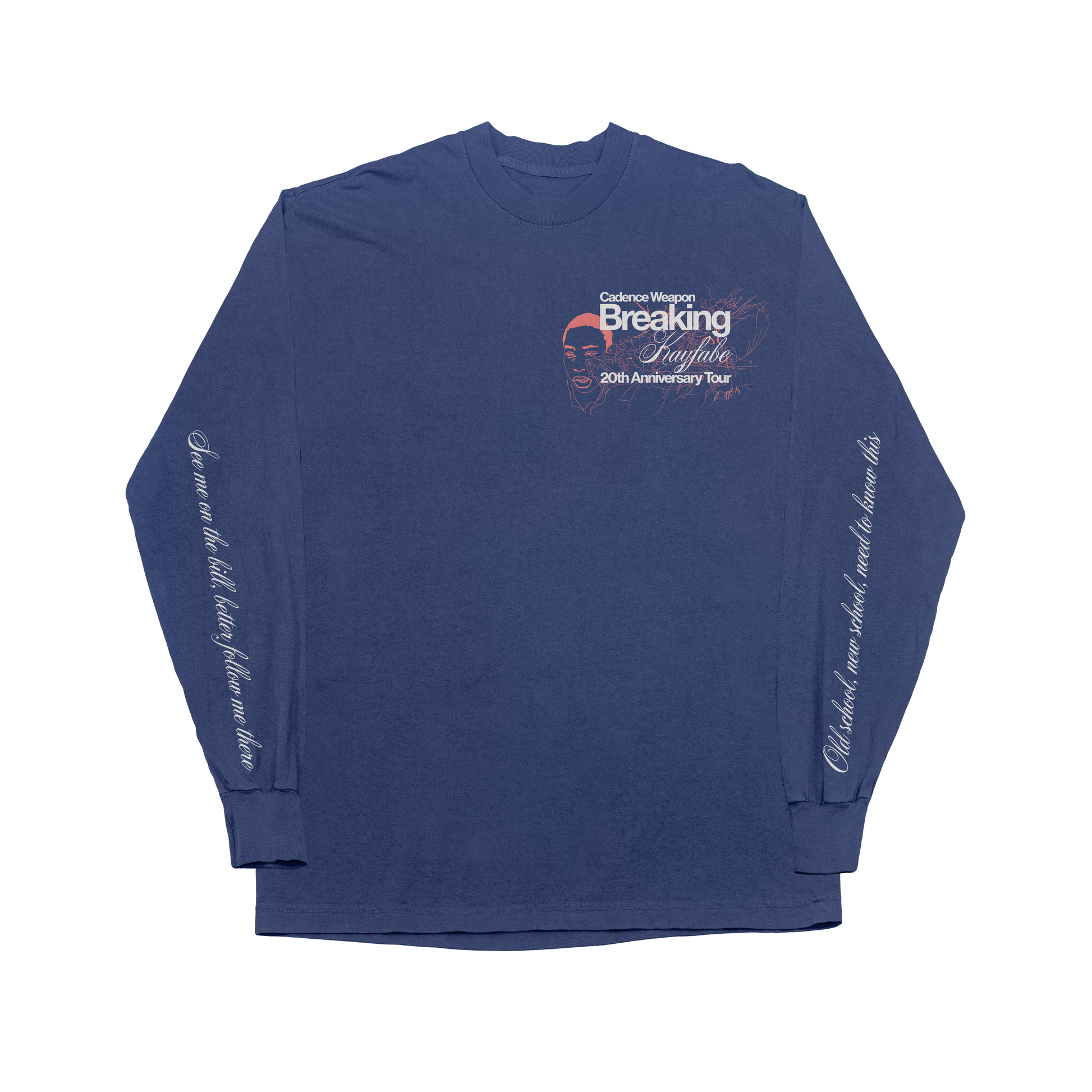 Celebrate two decades of iconic rap music with the Breaking Kayfabe 20th Anniversary Tour long sleeve. This is a four-sided print (front, back, arms) designed by @polytex.studio using elements of the original Breaking Kayfabe album artwork. Whether you are a CW diehard or just like to look good this is the missing piece from your closet.